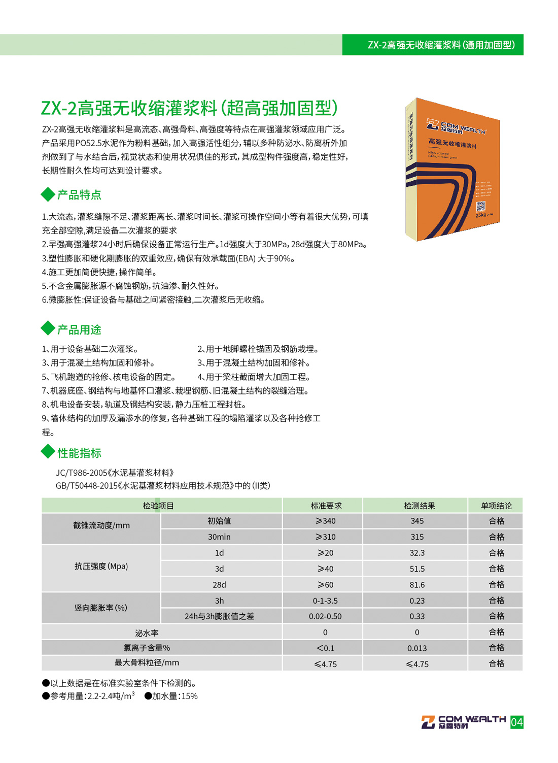 ZX-4/CGM-4高强无收缩灌浆料(超早强加固型)